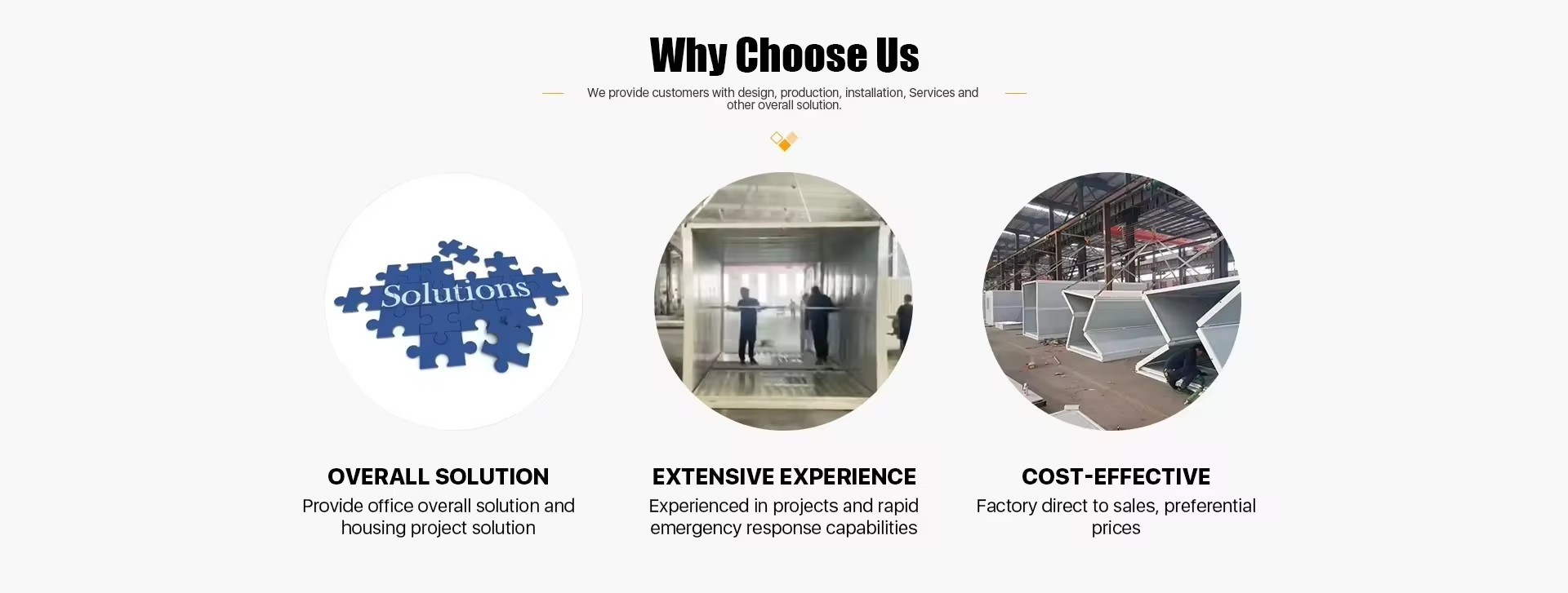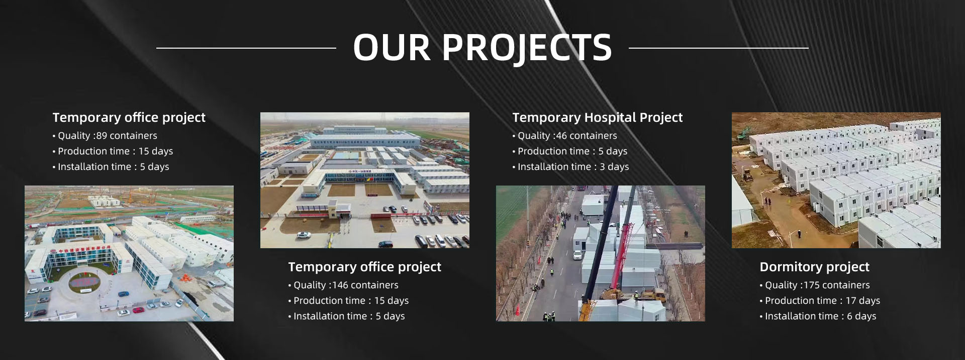 Guangzhou Qianguang Technology Co., Ltd. is one of the first established and sector's leading companies as Chinese global brand on container house and pre fabricated modular steel structure manufacturing, export and international contracting services.Our products meet urban needs with combination of today's environmental-friendly materials and design elements without compromising aesthetic features and different geographical regions under harsh climatic conditions at same time with in-house engineering, procurement, production, logistics, assembly, infrastructure and super structure works,including testing and commissioning. Our has global partners over 160+ countries and got the containers projects of Olympic Games and FlFA World Cup Qatar etc. Focus on quality and service, build warm house for the world. We are ready for the future with our strength coming from unison.